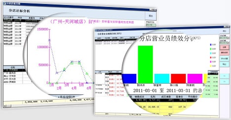 - 设定营业员、分店销售目标,实时跟进业绩达标率